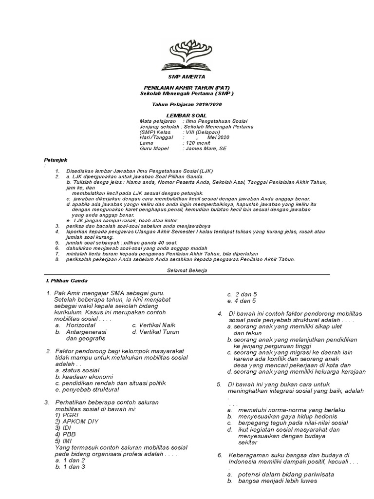 - Contoh Soal Ulangan Ips Kelas Viii Smp Mts Materi Pengaruh Interaksi Sosial Terhadap Kehidupan Sosial Dan Kebangsaan : Terjadinya Peningkatkan Integritas Dan Tata Kerja.