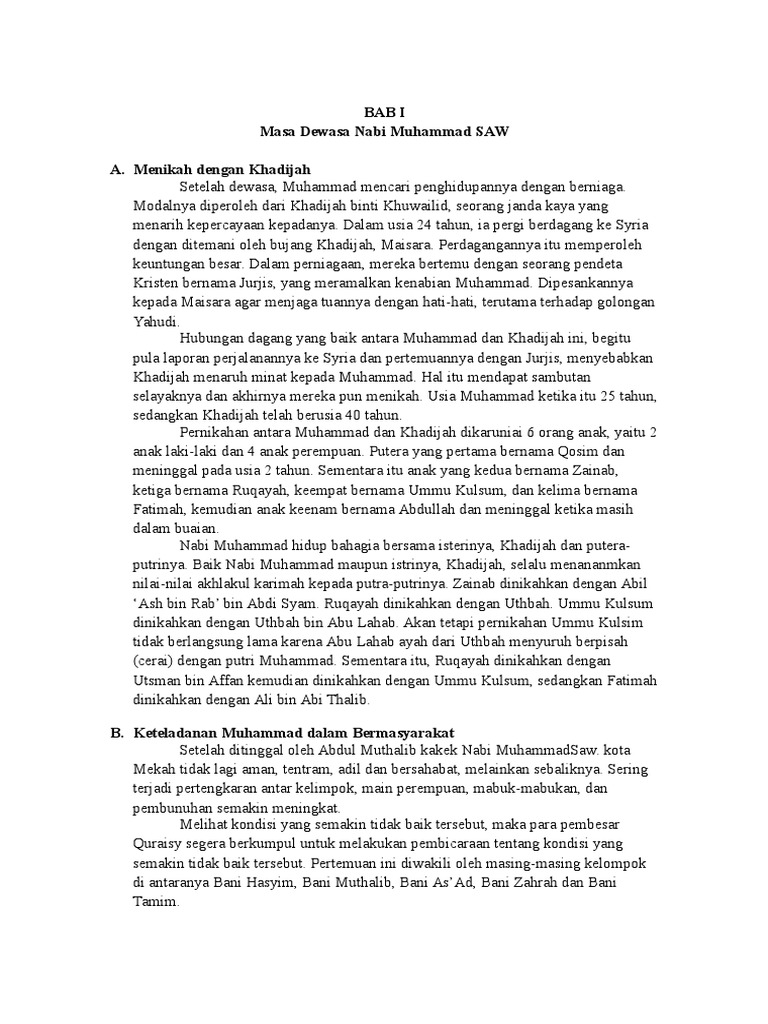 - Dr Marzuki M Ag Buku Pai Smp 7 Sejarah Bab 5 . Kali Ini Kami Akan Menceritakan Kisah Nabi Muhammad Saw Episode Pernikahan Dengan Khadijah.
